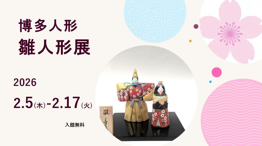 最新情報 一覧を見る 2026.01.26お知らせ 【イベント】2.5-2.17「博多人形雛人形展」開催のお知らせ 2026.01.24お知らせ 【お知らせ】1.25※完売いたしました。「カプセル博多人形パンダ」明日1月25日10時より追加販売します! 2026.01.06お知らせ 【イベント】1.22-2.3「かわいいパンダ展」開催のお知らせ 一覧を見る 体験教室 一覧を見る 2026.01.23お知らせ 2月8日(日)博多張子「赤鬼・青鬼」のお面絵付け体験を開催します! 2026.01.18お知らせ 2月15日(日)は博多織の生地を使った「帯地キーホルダー作り」を開催します。 2026.01.12お知らせ 2月1日(日)博多人形体験教室はペンギンの絵付け体験を開催します! 一覧を見る 作家・他施設情報 一覧を見る 2026.01.08お知らせ 1月9日(金)~12日(月・祝)博多駅構内マイング広場で福岡・博多の伝統工芸品の 販売会を開催します! 2025.12.22お知らせ 【お知らせ】今年も博多阪急「福の縁起物市」に出展します! 2025.02.17お知らせ 【イベント】2.19-3.2 くまもと工芸会館にて「筑前博多の伝統工芸品展」開催! 一覧を見る 知る はかたの伝統工芸とは 知る はかたの伝統工芸とは 博多織 博多人形 博多曲物 博多独楽 博多鋏 博多張子 博多おきあげ マルティグラス 今宿人形 深める 工芸の歴史と未来 職人と技 作家紹介 施設案内 はかた伝統工芸館について はかた伝統工芸館利用案内 買う 博多織/博多人形販売店舗一覧