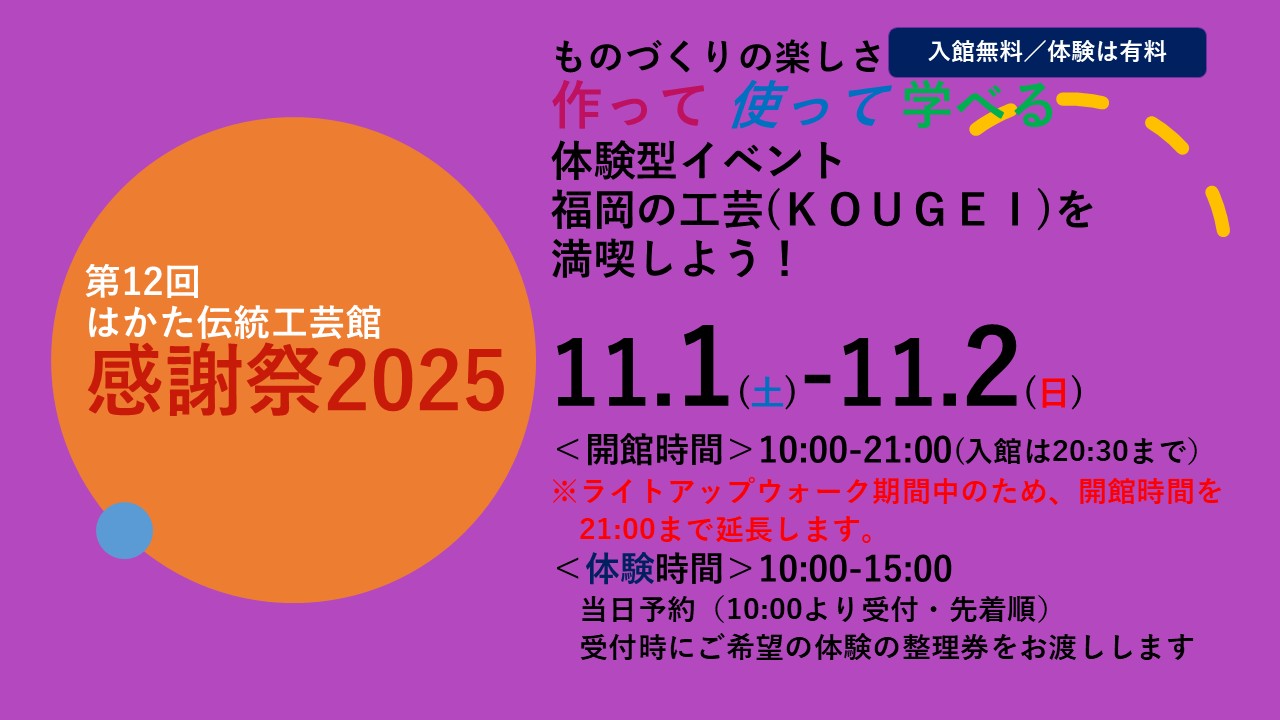 最新情報 すべての記事 カテゴリー イベントお知らせその他メディアリポート活動実績重要 月別アーカイブ 2025年11月 2025年10月 2025年9月 2025年8月 2025年7月 2025年6月 2025年5月 2025年4月 2025年3月 2025年2月 2025年1月 2024年12月 2025.11.03 福岡市東区なみきスクエアで12月20日(土)博多人形 2026年干支「午」の絵付け体験を実施します。 2025.10.18 リポート 【リポート】今年もアビスパ福岡選手会smileプロジェクトと福岡・博多の伝統工芸がコラボ! 2025.10.15 イベント 【イベント】11.1-11.2「第12回 はかた伝統工芸館 感謝祭 2025」開催のお知らせ 2025.10.06 イベント 【イベント】10.19-10.28「福岡・博多の伝統工芸×アビスパ福岡 コラボ企画展2025」開催のお知らせ 2025.09.27 リポート 【リポート】「ジャパンフェストアトランタ2025」リポート! 2025.09.15 イベント 【イベント】10.2-10.14「肥後の民工芸品展」開催のお知らせ 2025.09.11 イベント 【イベント】9.25-9.30「博多伝統職の会展」開催のお知らせ 2025.08.22 イベント 【イベント】8.28-9.2「第十一界博多人形妖怪展」開催のお知らせ 2025.08.20 リポート 【リポート】8.20「はかた伝統工芸館夏休み親子de博多の伝統工芸体験教室(博多人形・博多織編)」リポート! 12345...> 2019年以前のお知らせはこちら