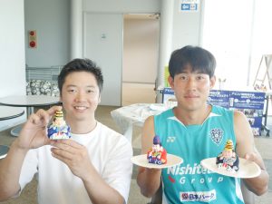 今年もアビスパ福岡の選手の皆さんに、福岡・博多の伝統工芸に触れ、体験していただく企画として、博多人形を制作していただきました。