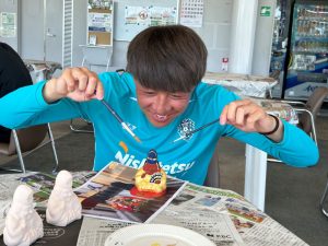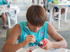 初めての選手たちも、楽しそうに個性豊かな福の神を作っていきます。