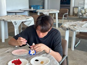 ウェリントン選手を見事に表現した橋本選手は、髪型や目の細かな描写にこだわりながら、1時間くらいかけて丁寧に制作していました。