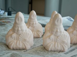 ここから絵付けがスタートします。さあ、どんな福の神が誕生するのか楽しみです!